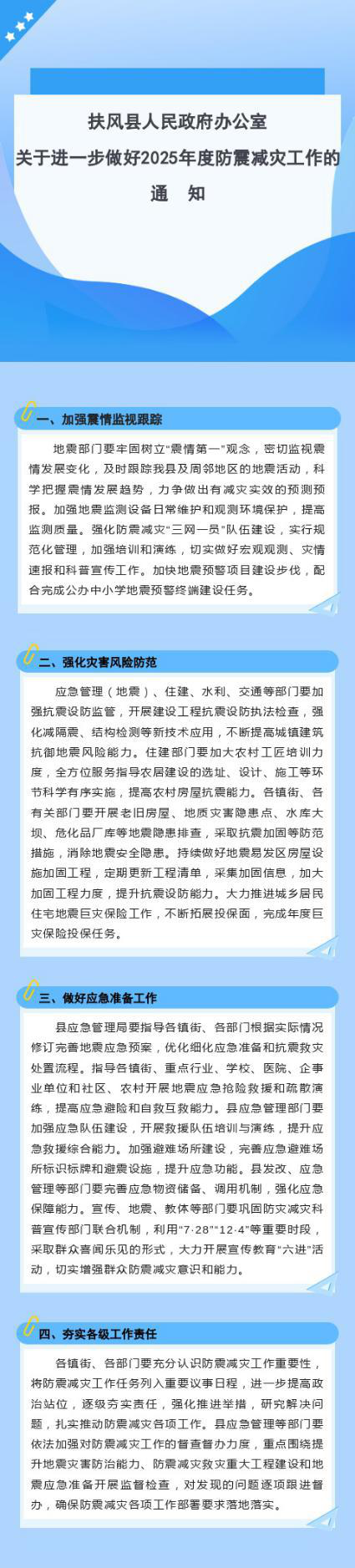 原文鏈接:扶風(fēng)縣人民政府辦公室關(guān)于進(jìn)一步做好2025年度防震減災(zāi)工作的通知